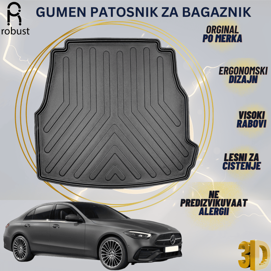 Патосник за гепек, по мерка на возилото, одлично лежи во багажникот. Изработен од мека гума, која спречува лизгање. Рабови 3-5цм.