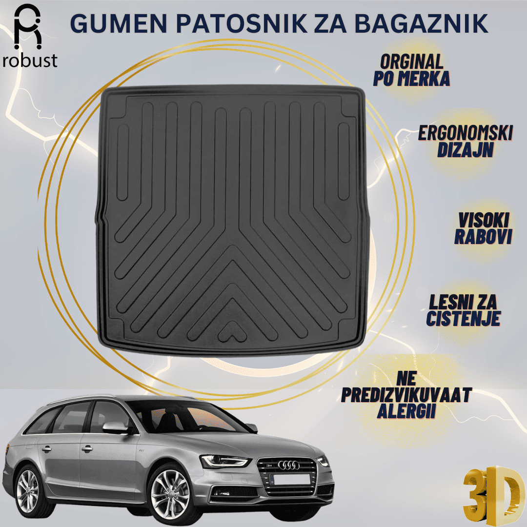 Корито за багажник, изработени по тип на возило, одлично се вклопува на интериорот на возилото. Патосницата е изработена од ароматизирана мека гума, која не дозволува работите ставени на неа да не лизгаат. Длабоки се од 3-5цм зависно од возилото.