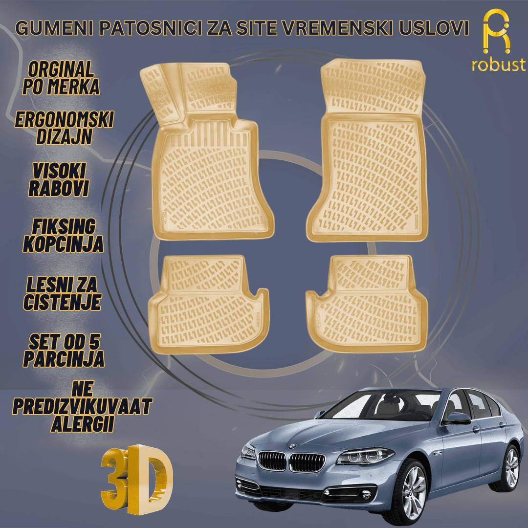 ROBUST 3D Gumeni patosnici korito BMW 5 F10-F11 2013-2017 FL Krem